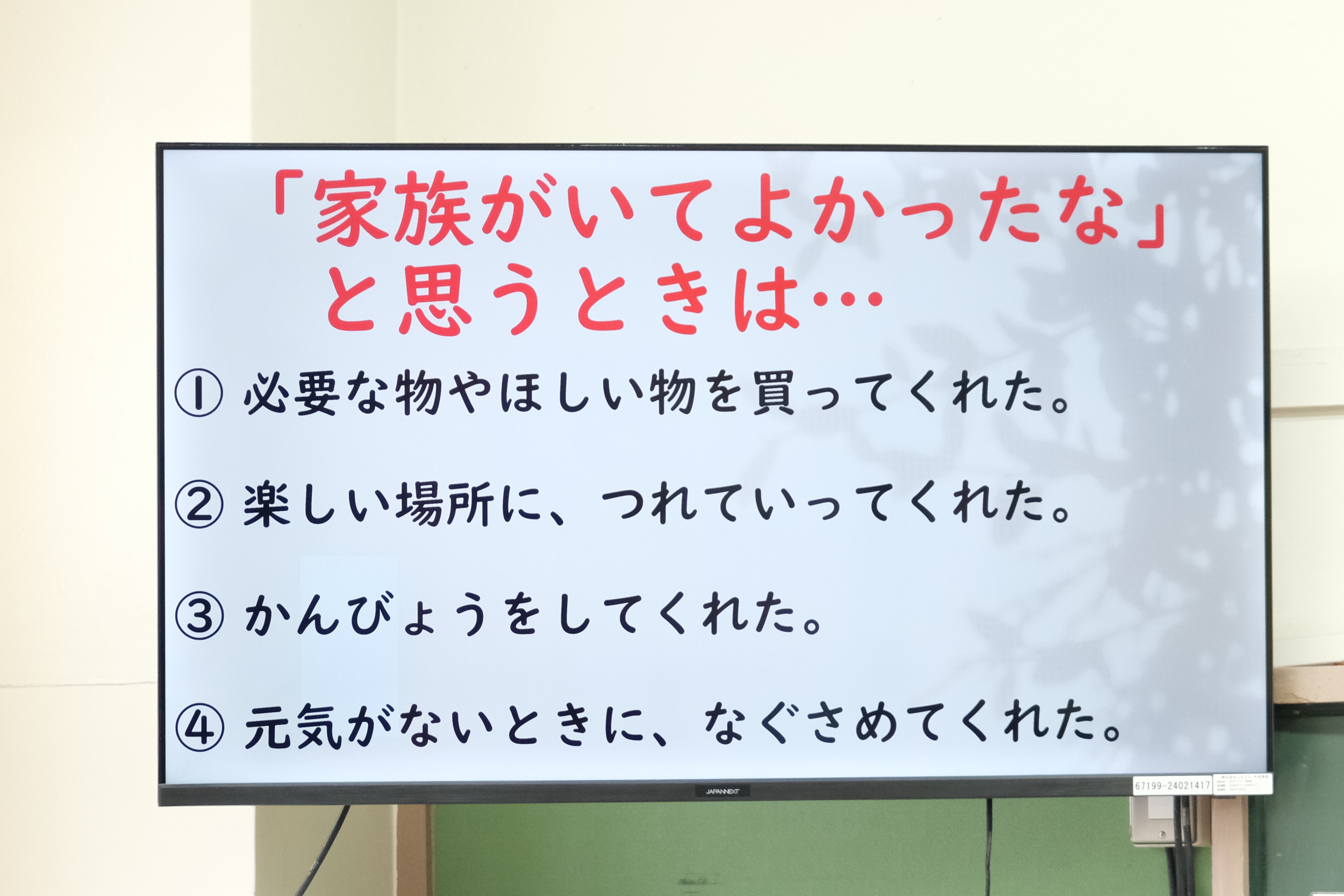このとき、児童からは「家族愛」に関連した意見が出た。