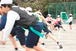 実際のゲームに入っても、山崎教諭は児童の動きを一緒に追いながら