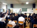 ■“よく観て、感じること”が俳句の第一歩 「俳句を作る人間として、ぜひ皆さんに覚えてもらいたい言葉があります。それは、“継続は力なり”です。これは生きていくうえで一生かかわる言葉だと思います。「俳句は物を“みて”考え、言葉で表します。同じ“みる”でも違いがあります。例えば、“見る”、これはさーっとみるだけ。すぐに忘れてしまうようなこと。次に“視る”は、視察の視、細かくみること。そして、“観る”。これは、観察って言葉からもわかるように、深くみる、考えながらみること。花がきれいだと思ったら、なぜきれいなのか?色がいろいろあるから?日の光が当たっているから?というような感じで深くみることです。“観る”ことは、感動すること。これが俳句の第一歩です」 ここで、青柳先生から挨拶句が披露される。挨拶句とは、どこかへ出かけた時、その土地のことを感じて詠む句のことだと説明する。 高天へ とどけ 八中俳句会 「このように詠んでみましたが、“高天へ”は“秋天へ”でもいいかもしれないし、“とどけ”は“ひびけ”や“とどろけ”でもいいかもしれないね。このように詠んだ句をもう一度、いろいろな角度で考えてみることを“推敲”と言います。この句をみんなにも推敲してもらおうかと思います。いいと思う方へ手を挙げてください」 「まず、はじめの部分、上五は“高天へ”がいいと思う人?“秋天へ”がいいと思う人?」 高天へ ひびけ 八中俳句会 同様に青柳先生が詠んだもう一句についても多数決で推敲する。 鈴虫が リーンとなくと 秋告げる (R.Mくん) 「この句は、季語が二つで、“季重ね”と呼ぶんだけど、よく見ると“鈴虫”に重点が置かれているね。このようにどちらかにポイントがあれば俳句として成り立ちます」 紅葉が 夕日と一緒に 笑ってる (H.Kくん) 「紅葉が実際に笑うことはないけど、この人には笑っているように感じたんだね。これはおもしろいね」 他にもいくつかの句について講評し、最後に青柳先生からこんなお願いが。 この授業以前に、インターネットを利用して俳句に関する調べ学習も行ったというが、自分たちが作った俳句について直接、専門家から講評を受けることで、調べた内容をより深く理解できたのではないだろうか。 「青柳先生からお話をお聞きすることで、俳句の専門家ならではの幅広い知識を教えてもらいました。今日のお話を参考によりよい一句を詠んでもらい、投句してもらう予定です」と加藤先生。 ■初めての句会に緊張が・・・ まずは各自、パソコンに向かい句会システムの投句画面に考えてきた自作の句を投句する。「では皆さん、投票してください」という加藤先生の合図で一斉に投票に入る。投票画面から自分がよいと思った句を三つ選んで投票する。投票の際、作者の名前は表示されないので、誰の作品かはわからない。一句一句画面を見つめて選考する生徒たち。友だちはどんな句を入れたのだろう?自分の句は選ばれるかな?自分の句に入れてしまおうかな?そんなちょっとした緊張の中、投票も完了。投票はリアルタイムで結果に反映する仕組みになっている。 「おおーっ」早速、投票結果を見て、歓声があがる。 枯れ葉舞う 色鮮やかな 雲の下 (K.Aくん) 「みんな、前回詠んだ句よりよくなった感じがするね」と加藤先生。 最後は自分の句についての説明と、上位に選ばれた句はどんなところがよかったのかをワープロでまとめた。例えば、Uさんは自身の句について、「もみじは、赤くて人の手のようだから、“赤い手”。その手が、1つの木から色んな方向にむかって伸びようとするすがたから“四方にのばす”。この2つをつなげてこの俳句をつくりました」と説明する。上位に選ばれた句については、「その情景が目に浮かぶよう」「表現力がある」という理由を挙げた生徒が多かった。中には「優しいUさんらしさが出ていた」という意見も。 今回利用した句会システムについては、特に操作に困った生徒もなく、授業後の感想でも「一人一人が気に入った作品を投票できるのがよかった」、「みんなで投票しあい、良いところ悪いところなどを指摘しあって、自分の感性をより磨くことができる、システムだと思いました」と好評だった。 ■俳句を通じて豊かな心を育てたい 最後に、加藤先生は授業をこう振り返った。 (取材・編集:学びの場.com) |