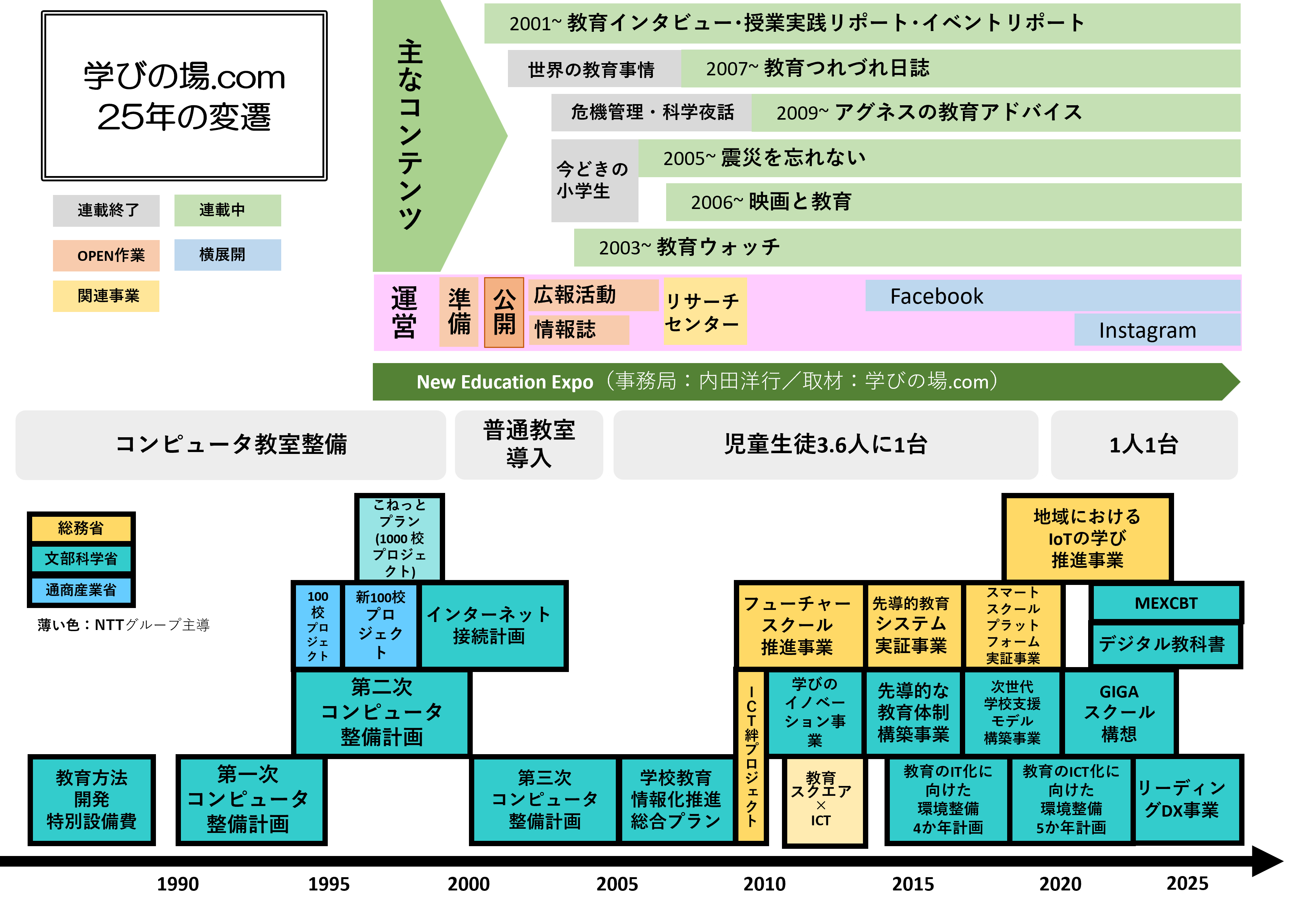 開設から今日まで、二度のサイトリニューアル、SNSページ開設など、通信技術やインターネット環境の変化、教育現場を巻き込む社会的な諸問題等に合わせ、学びの場も進化を続けてきました。