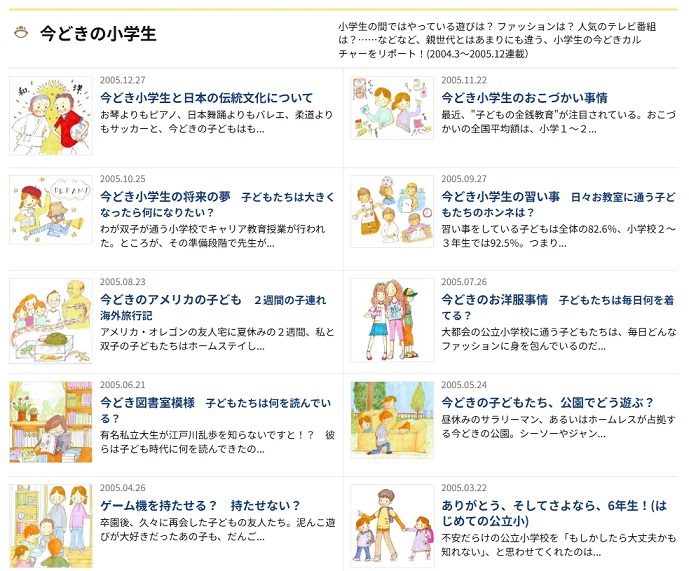 こちらも当時の小学生の様子をみずみずしくレポートしています。現在は立派な社会人やお父さん、お母さんになっていることでしょう。子どもの心を見失いそうになったら、一度覗いてみてください。