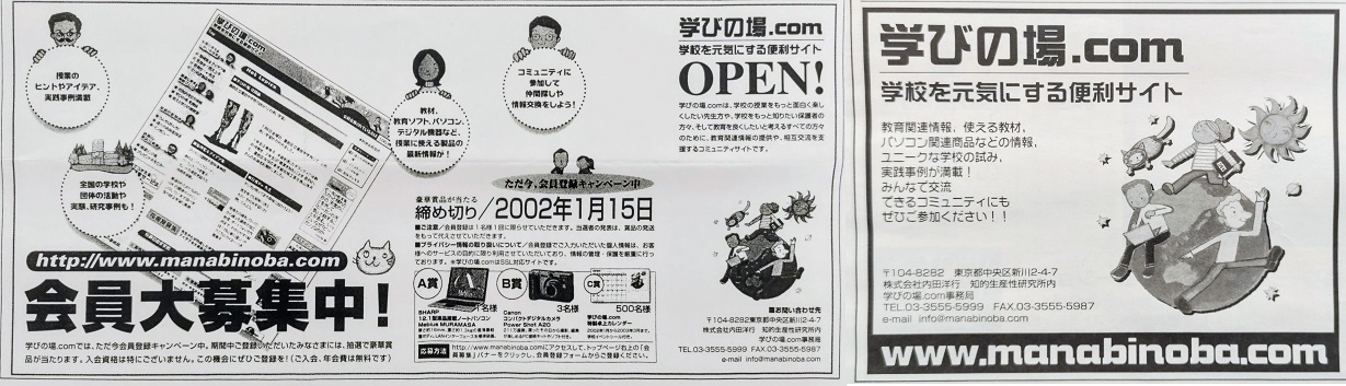 こうして、2001年12月、学びの場.comは、「教員・保護者を含む教育に関心のある方向けの教育ポータルサイト」として公開されました。