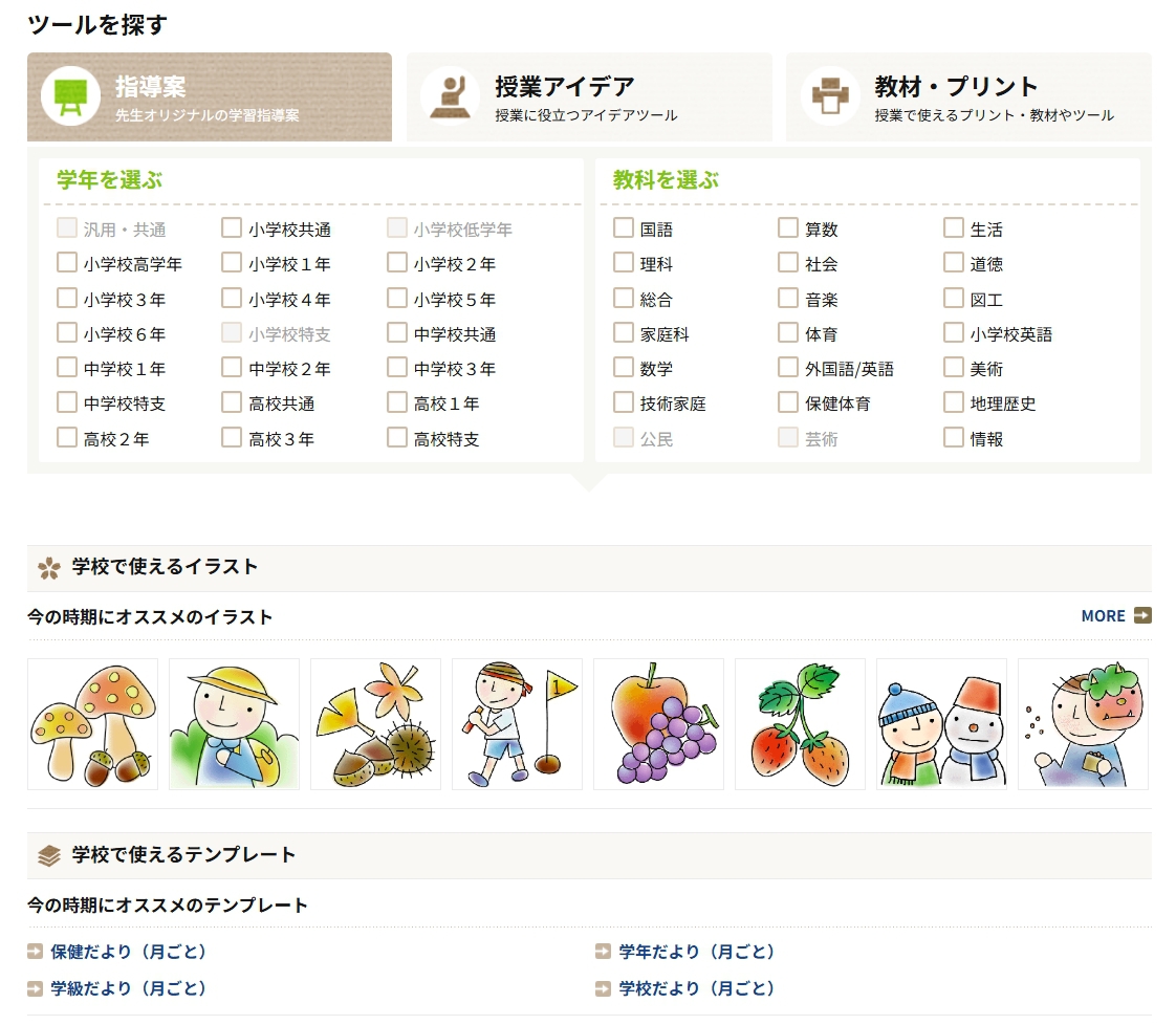 学びの場.comの開設当初。授業アイデア、指導案、教材・プリント、イラスト集は、特に先生がたの人気を集めました。