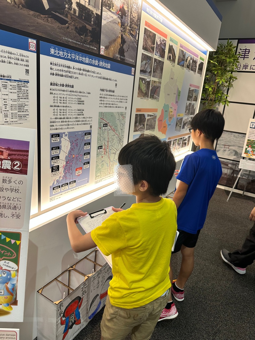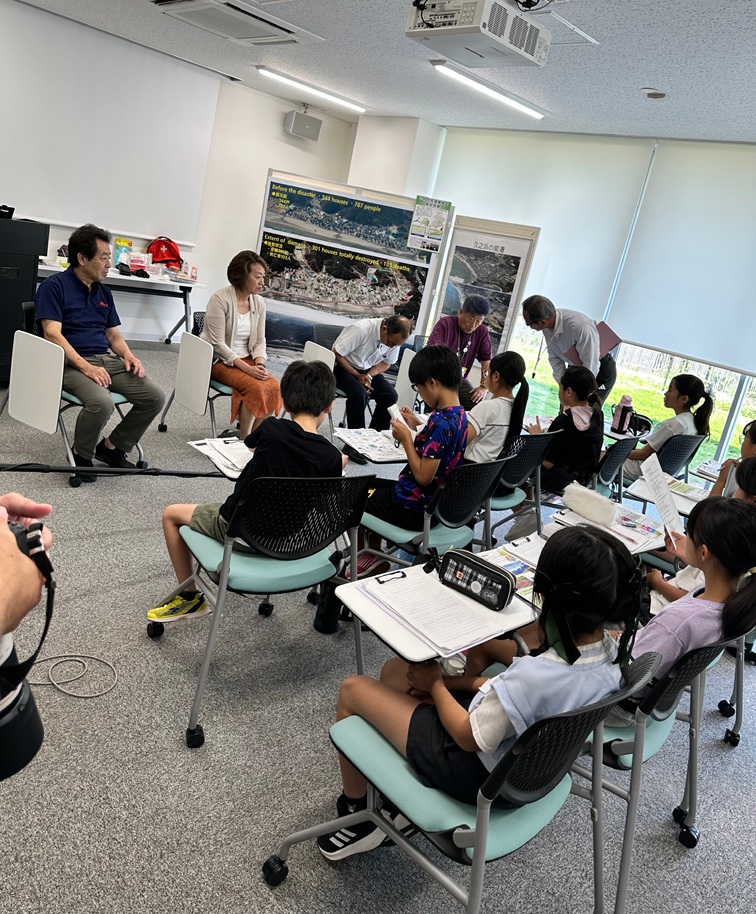子どもたりの表情・空気が変わったのは、薄磯にあるいわき震災伝承みらい館を訪れ、高田悟 館長のサポートを得て、パネルから情報を取得し、永山宏恵市議会議長、大峯英之市議会前議長、いわき語り部の会の石塚洋悦先生、地元の老舗鮮魚店「おのざき」の小野崎幸雄会長といった震災当時、自らも被災しながら緊急対応と復興に尽力した大人たちの生のストーリーをインタビューしてからだった。