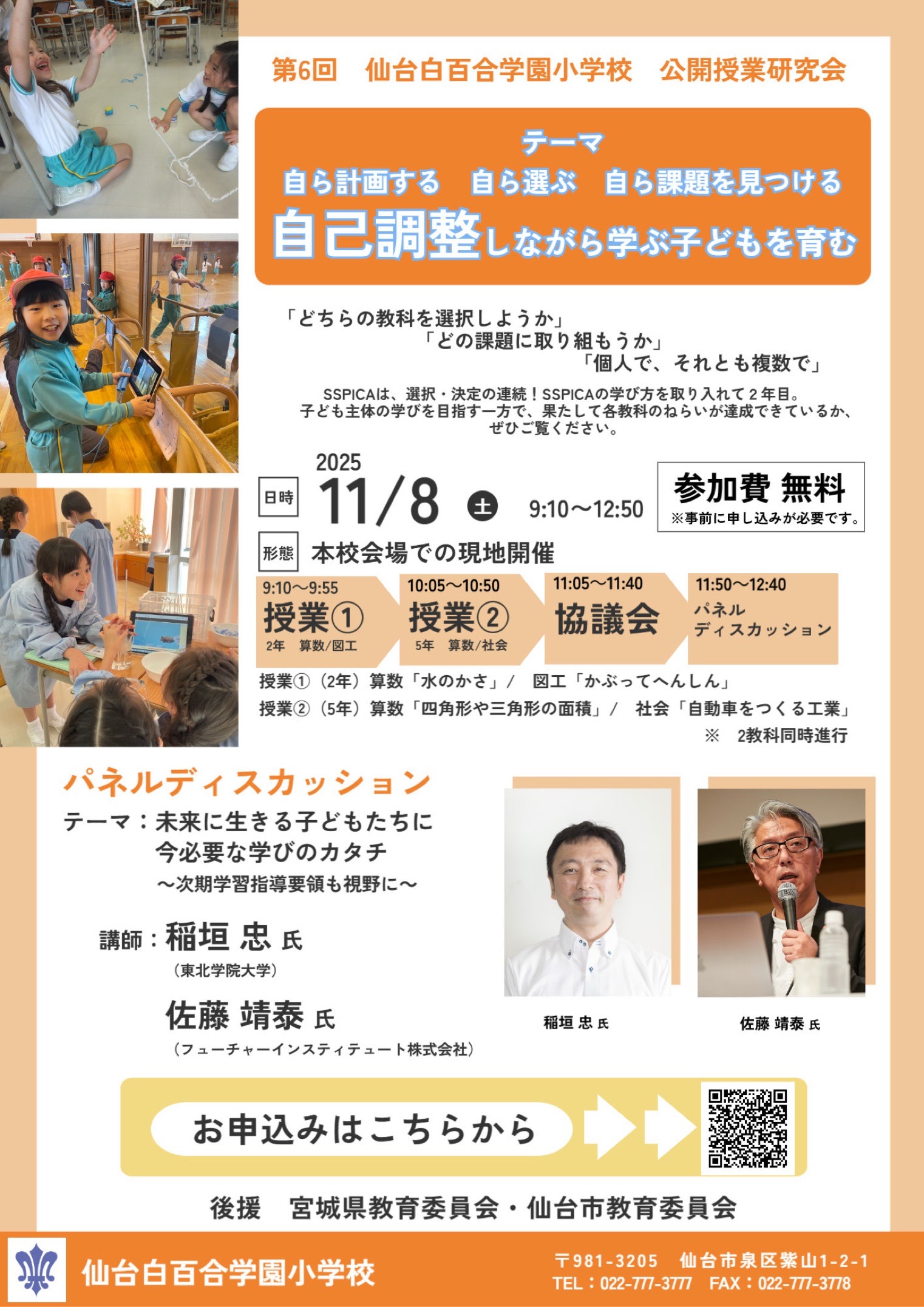 仙台白百合学園小学校 第6回 公開授業研究会「自己調整しながら学ぶ子どもを育む」