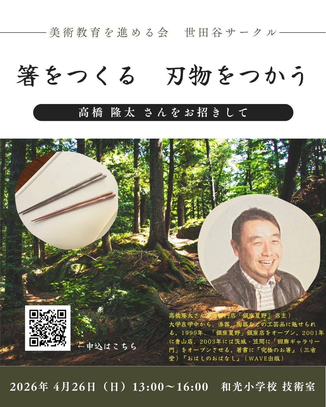 美術教育を進める会 世田谷サークル「箸をつくる 刃物をつかう」