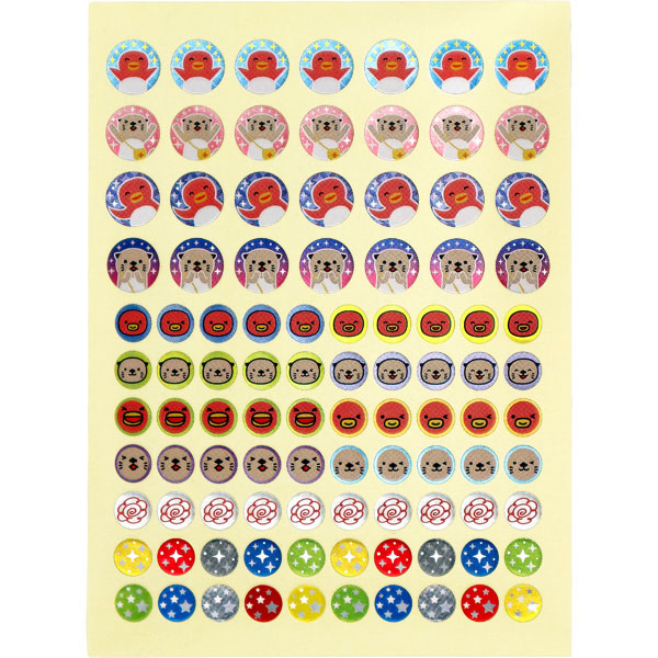 「いいね!Good!シール」よりプチサイズで、キャラクターの笑顔の他、はなまるとレインボーカラーのキラキラシールも付いています。