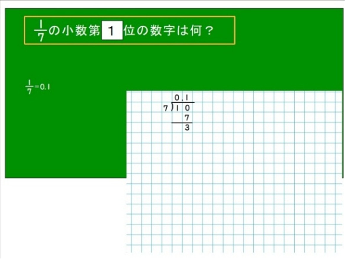 「『1÷7』を計算すると出せます。さっき計算したら小数第1位の数字は1でした。」