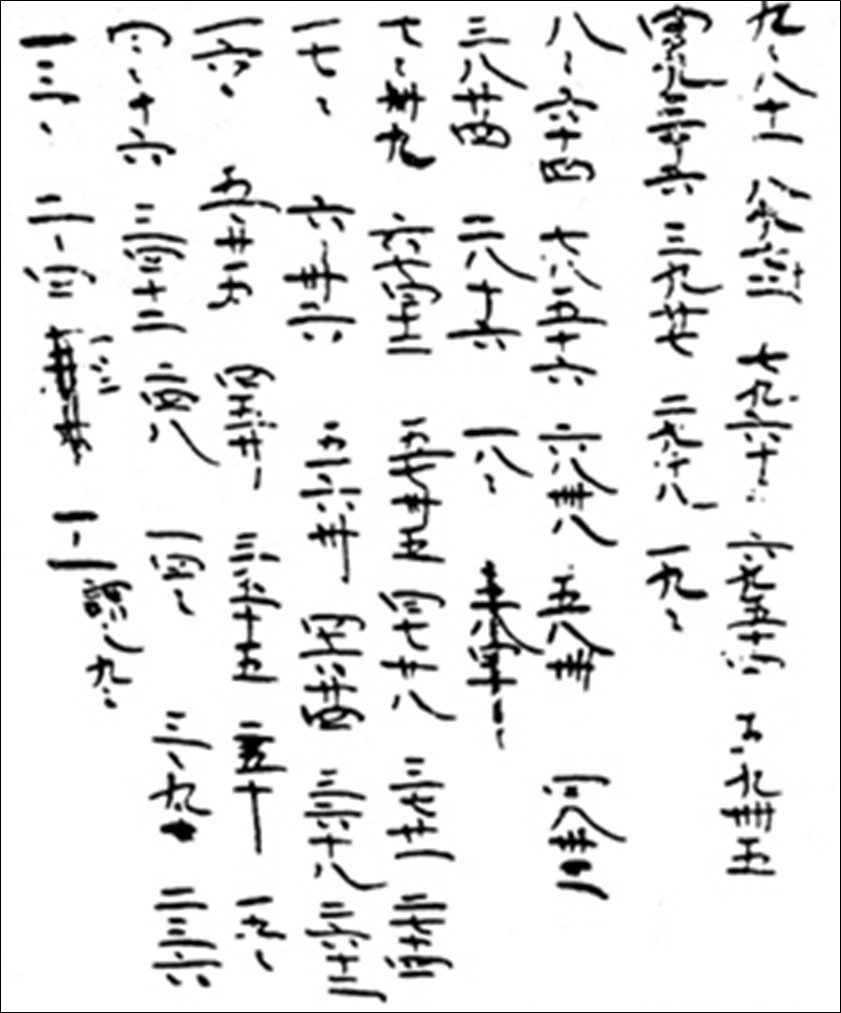 - 「四八丗三」「一〃二」の間違いや「五八四十」「一二六」に削除線やあること。