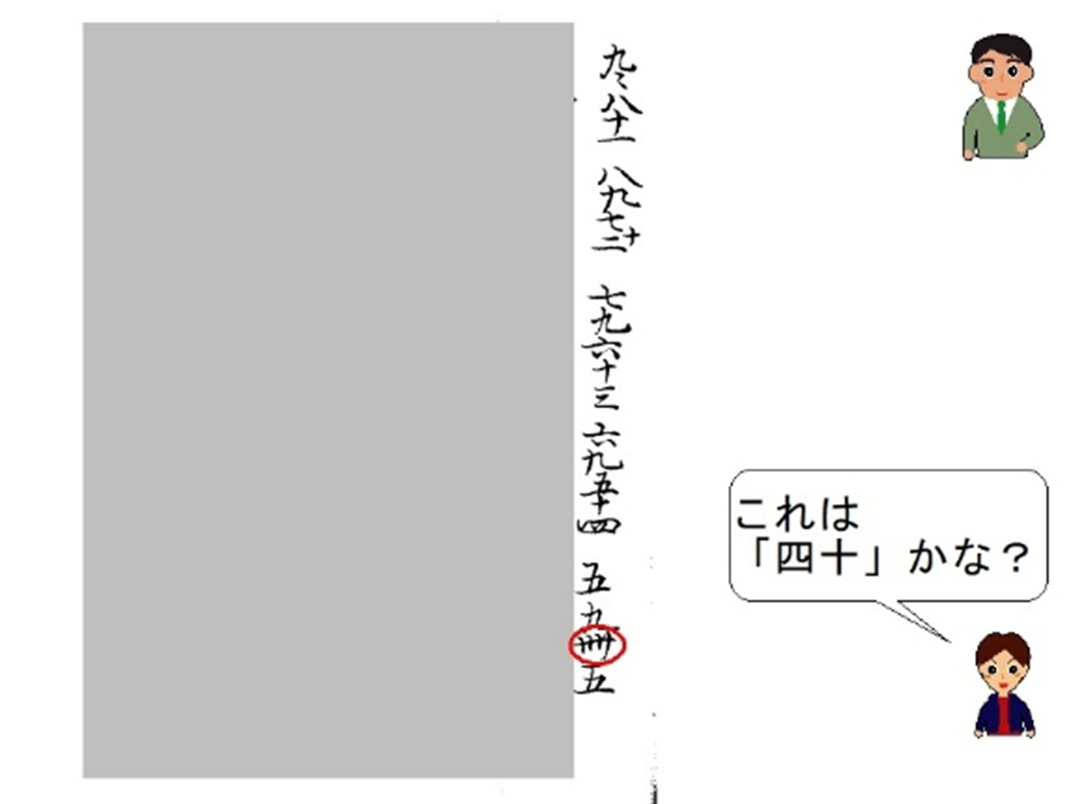 「『四十』かな?だって、『5×9=45』だから。」