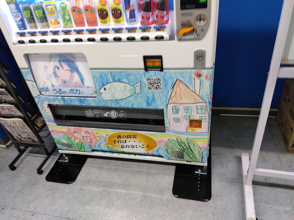 佐藤愛梨ちゃんの絵がラッピングされた自動販売機