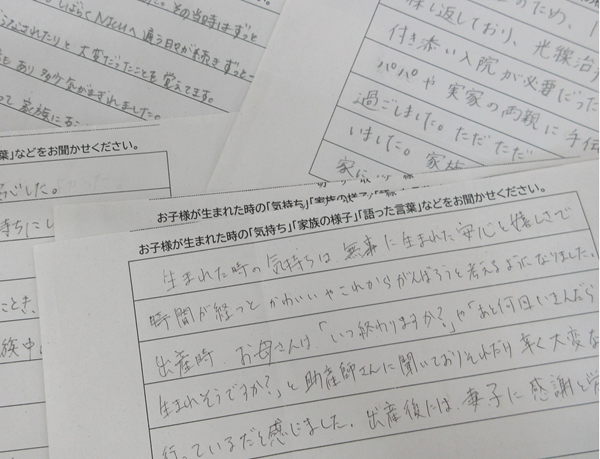 きっと主人公と同じように、自分もみんなから心配されて、生まれたことを喜んでもらえたのだろうと想像したようです。一方で、「実際にお父さんやお母さんがどう思っていたのか知りたい」という気持ちが芽生えているのを感じました。
