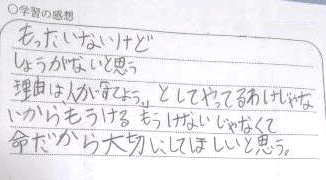 以下は、授業後の子どもたちの感想です。