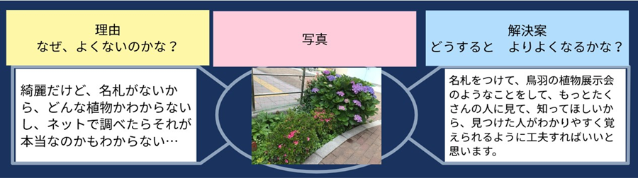こういった記述から捉えられることは、「~を作ってほしい」「~を改善してほしい」と、まだまだ意識が他者へ依存しているということです。1年間の学習を経て、「自分たちが変えていくんだ!」という思いを醸成していく必要があると強く感じました。一方で、「植物の看板を作って名前をお知らせしたい」などの、自分がなんとかしたいという思いを持つ子もいました。