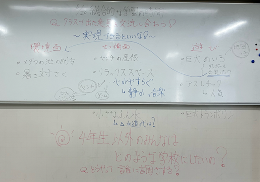 次回は、新たに設定された「4年生以外のみんなはどのような学校にしたいのかな?」という課題を解決し、一番大きな課題である「みんなが楽しく過ごせる学校をつくろう」に迫っていく過程を紹介できればと考えています。