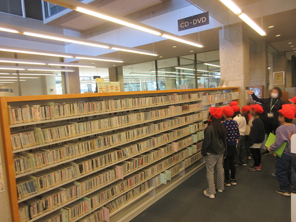 そして、見学当日。映画などを視聴できる「映像ホール」や「パソコンコーナー」などを見学したほか、バックヤードの書庫や会議室なども案内していただきました。普段は入れないところにも入ることができ、子どもたちは大興奮!一生懸命に学んだことをメモしていました。