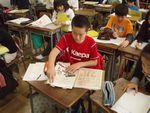 マニュアルの原稿に載せる情報が決まったらいよいよ自分の原稿作りです。この活動はかなり難しいかなと考えていたのですが、これまで学習をしっかりと進め、自分のチームの提案内容についてしっかりと理解しているので、児童はすらすらと原稿を書いていきました。これまでの経験でこのように多くの情報を凝縮して短くまとめる作業は児童にとって苦手であると考えていました。しかし、学習が充実してくると児童の「書きたい」という思いが高まってくるのだとあらためて感じました。